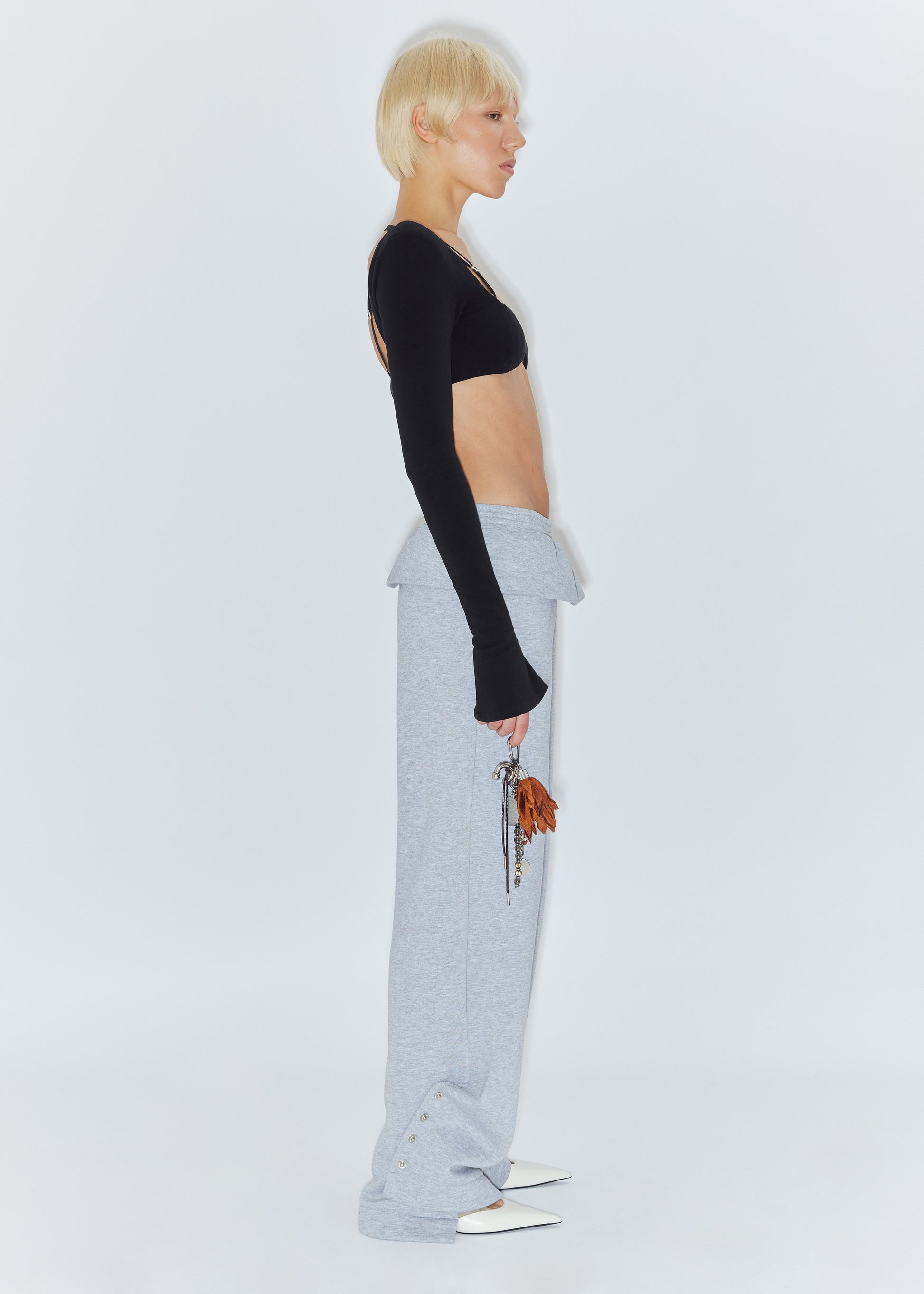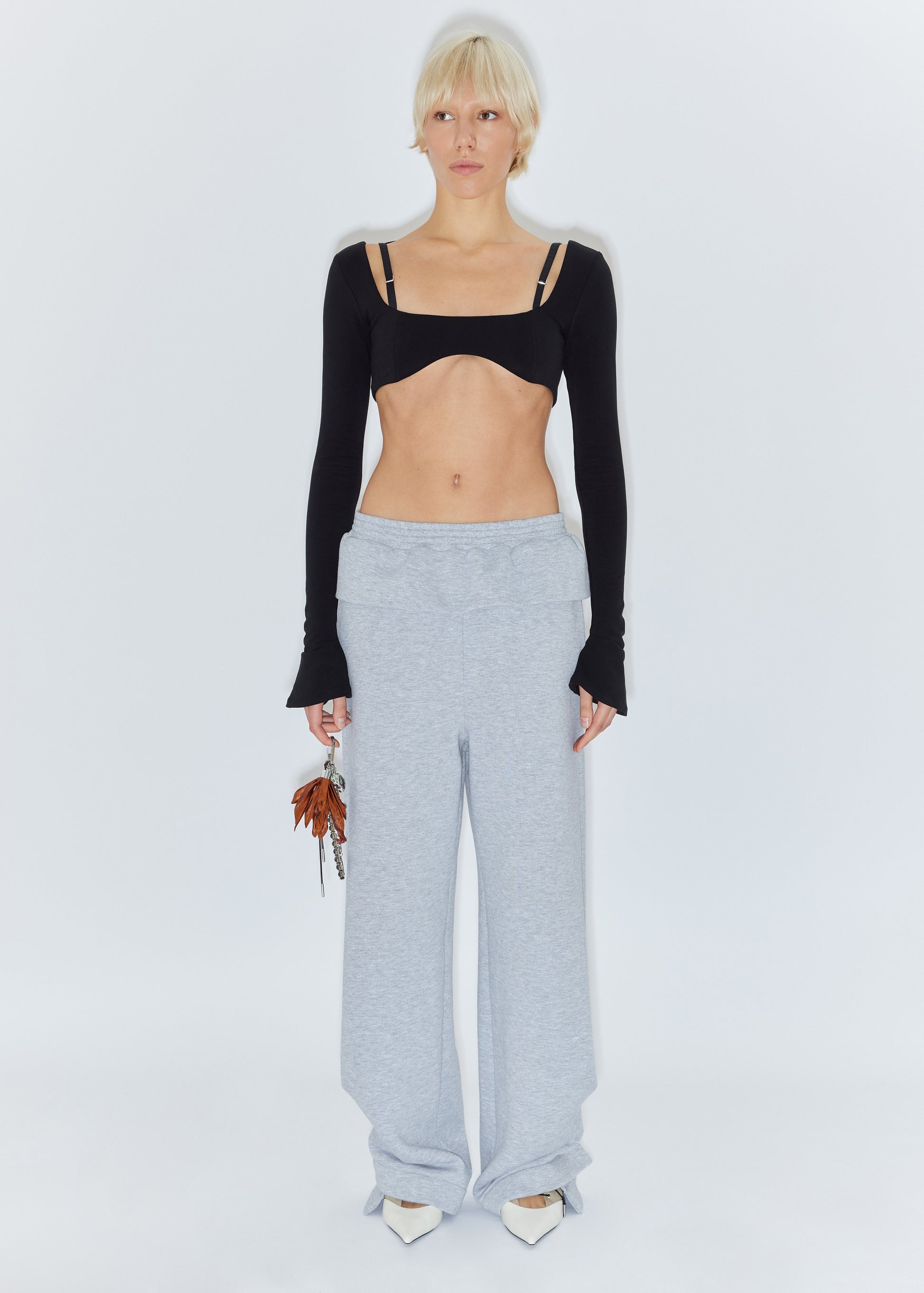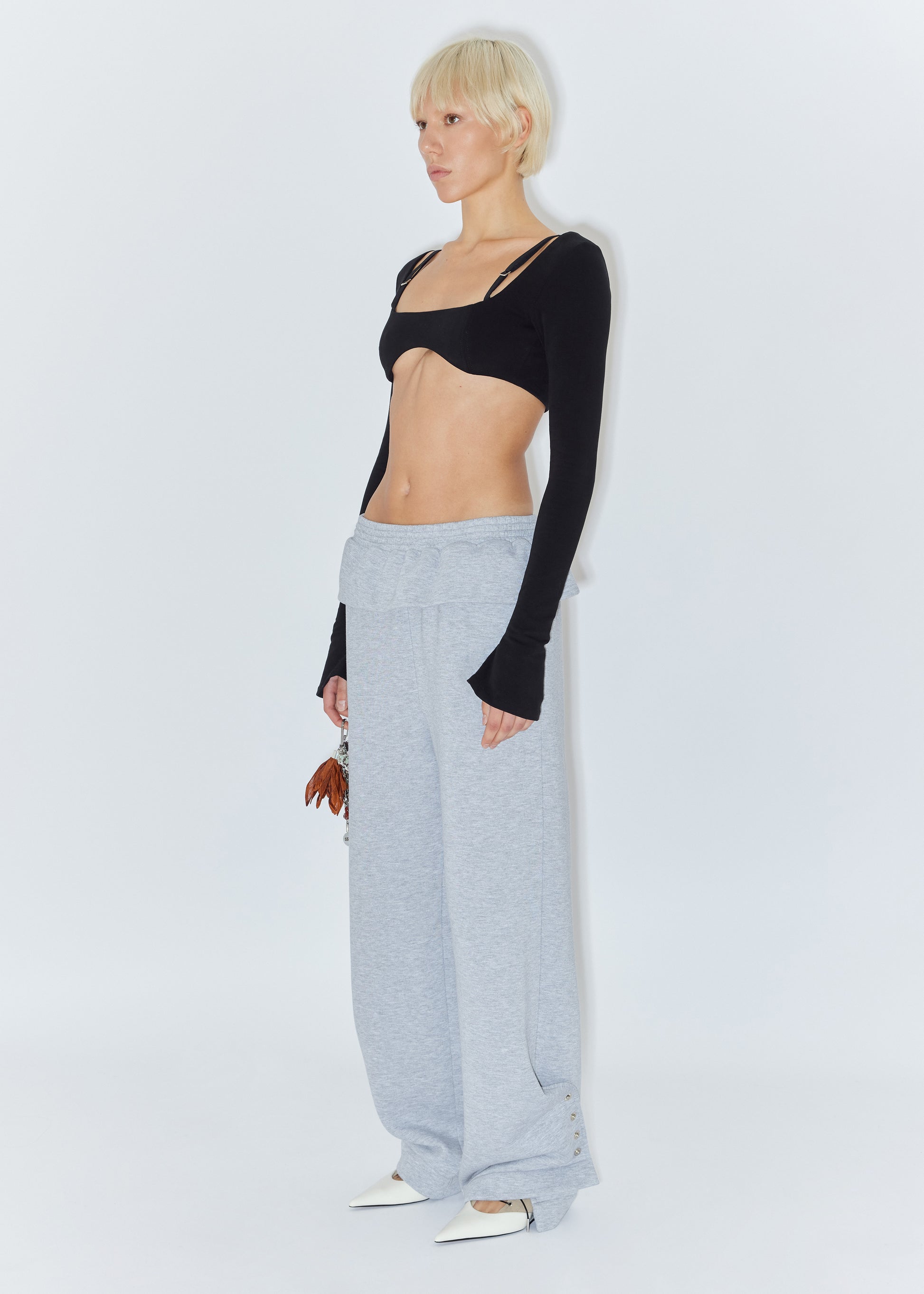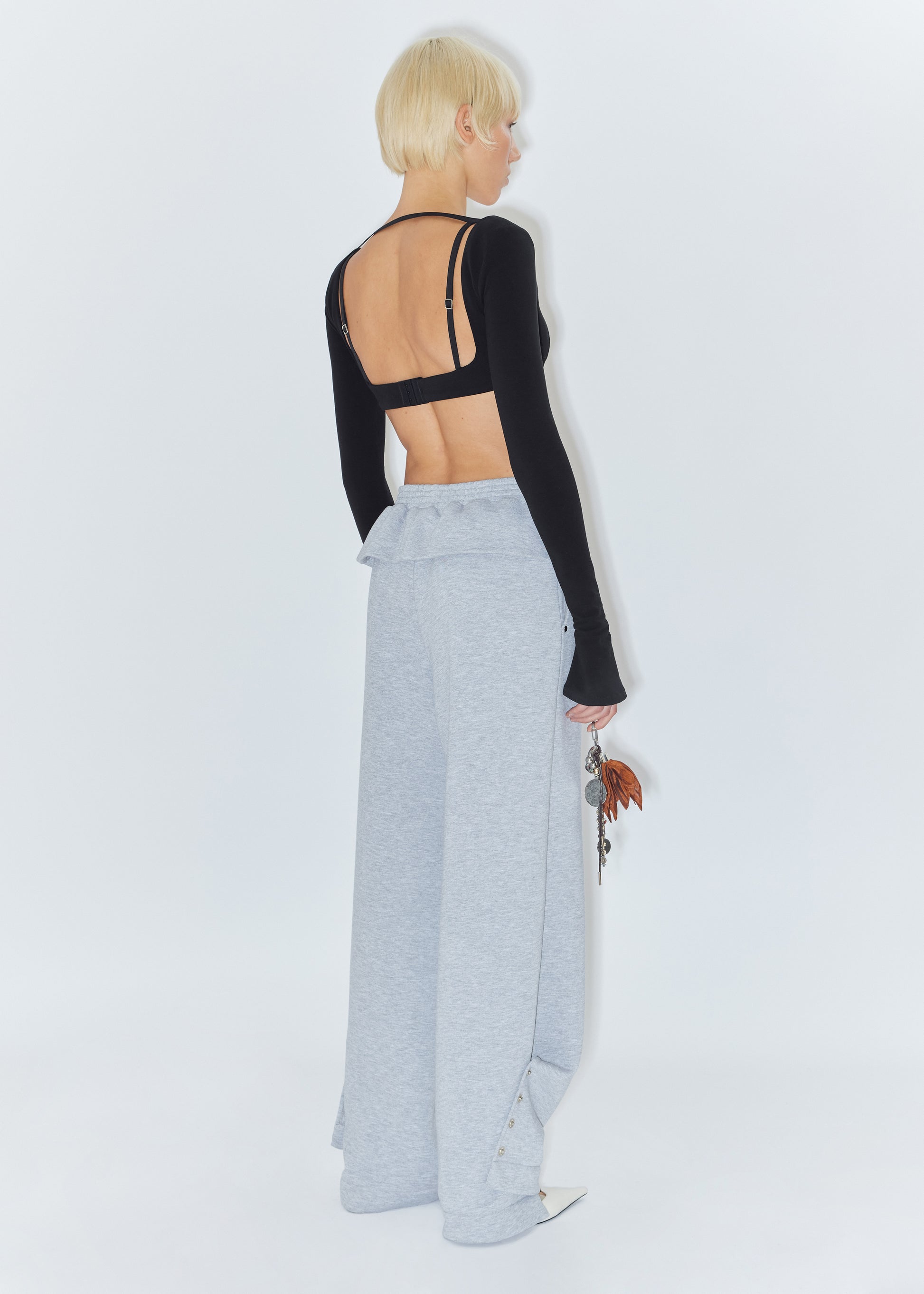 This top is cut from soft jersey fabric. It features square neckline, flared sleeves and adjustable straps. Hook & eye closure at the back.