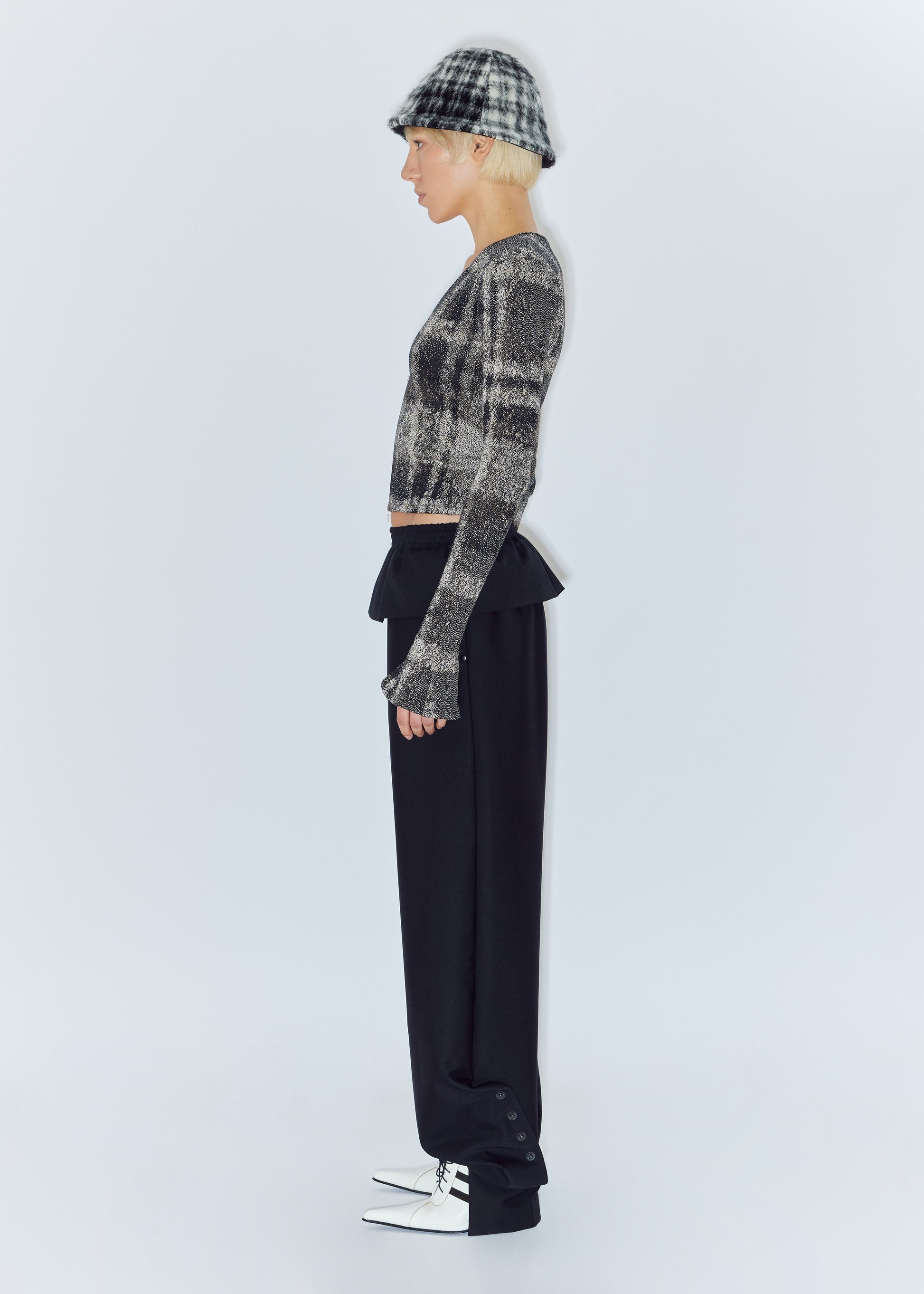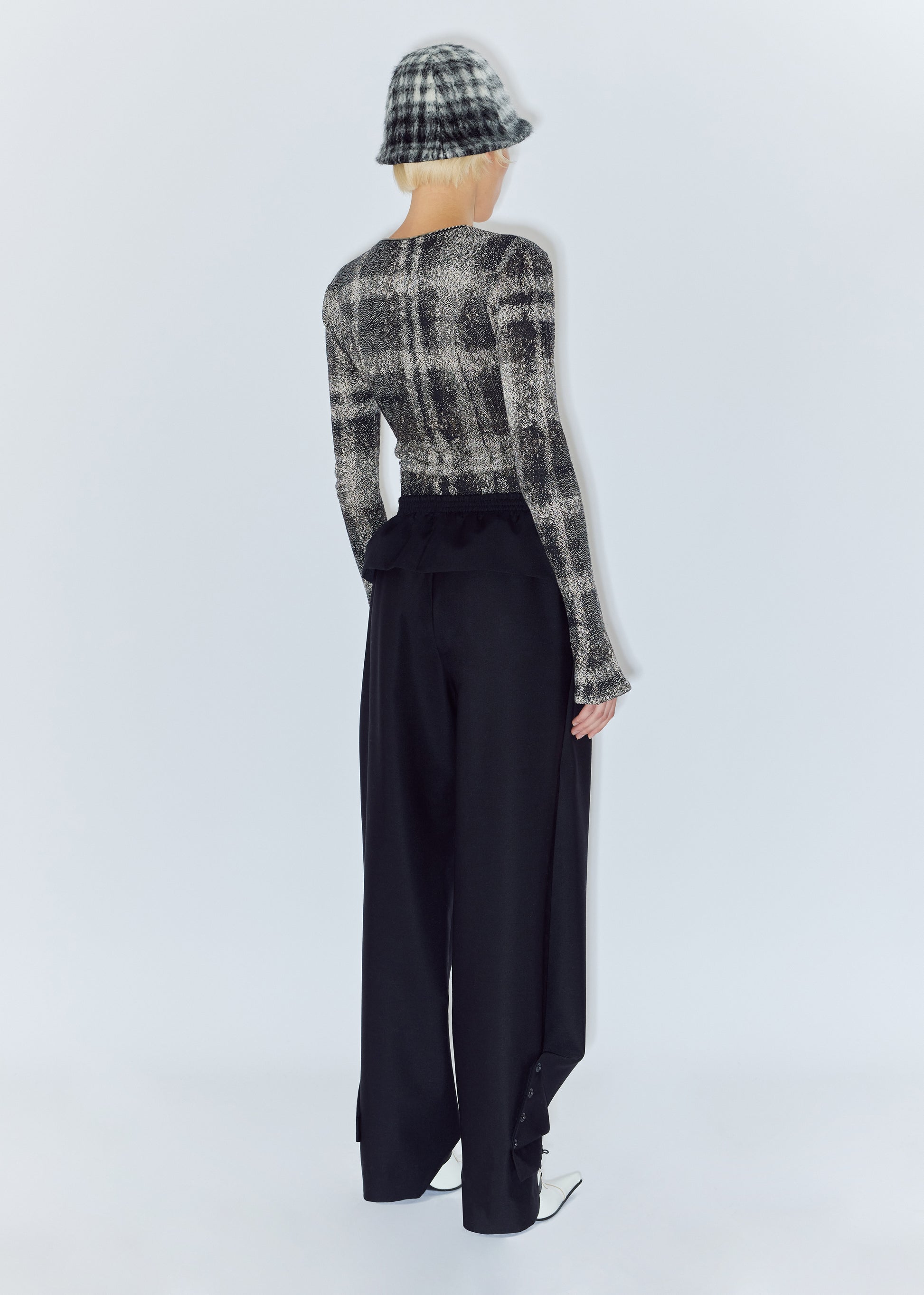 Cut from a soft viscose fabric for a fitted silhouette. Deep neckline with zipper running around the neck. Long flared sleeves.